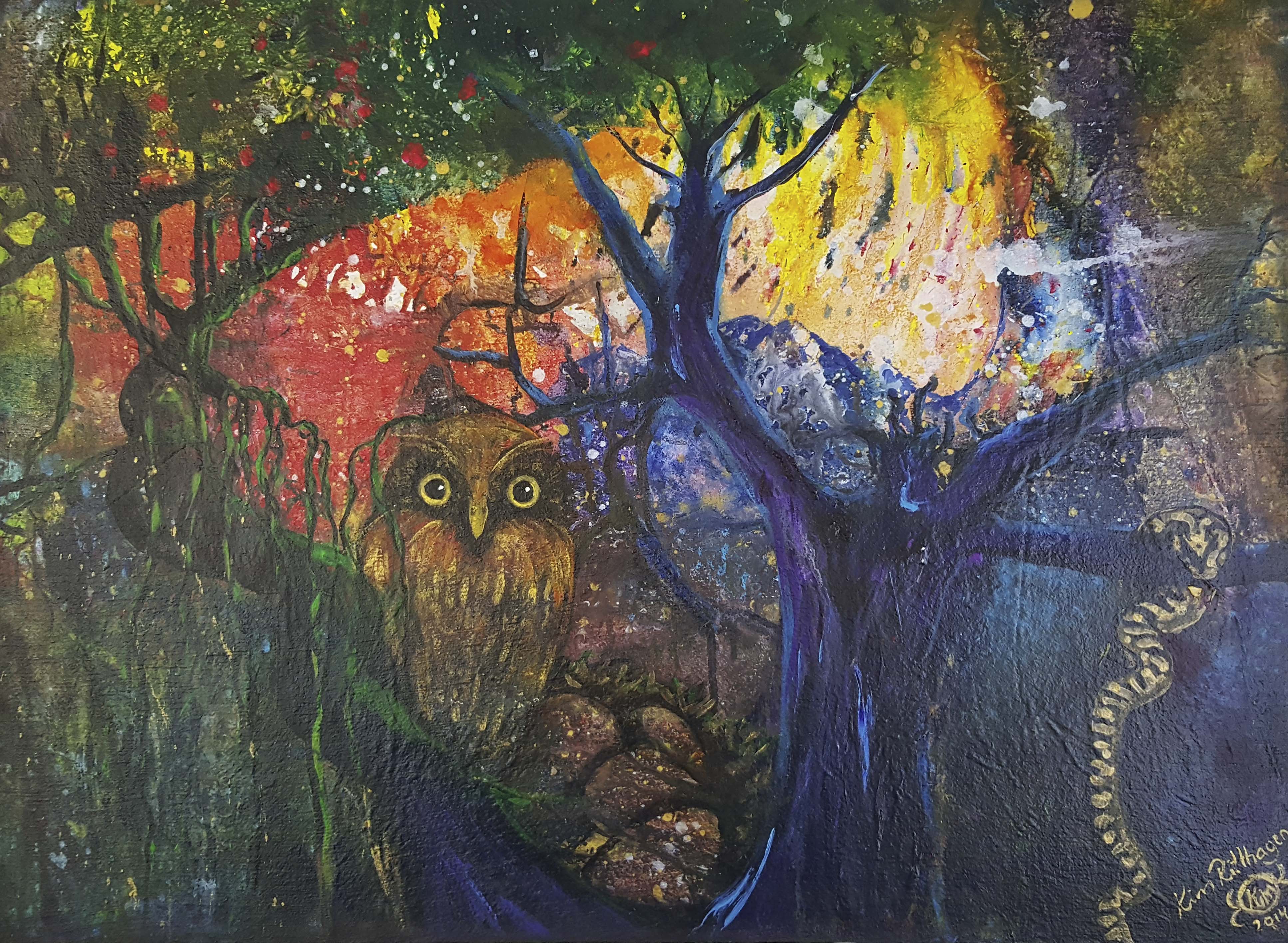 Varje målning är en resa. En rörelse från det inre till det yttre. Ett möte mellan det jordiska och det mytiska, mellan lekfullhet och allvar, mellan struktur och flöde. Jag hoppas att du som besökare låter dig vandra fritt mellan motiven och följer den rytm som talar till dig. För mig är bildkonst inte bara något man ser – det är något man känner.