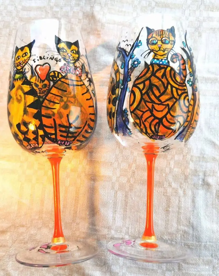 Målningarna är nya för i år, 2025 Runda kanvastavlor med våra rovdjur som motiv. Större tavlor av kattdjur. Om man tittar på dem med 3D glasögon får man en annan upplevelse. Inget konstigt egentligen. Jag använder mycket komplementfärger och kontraster. Denna 3d effekt är bara bonus och jag har inte målat med hänsyn till det.